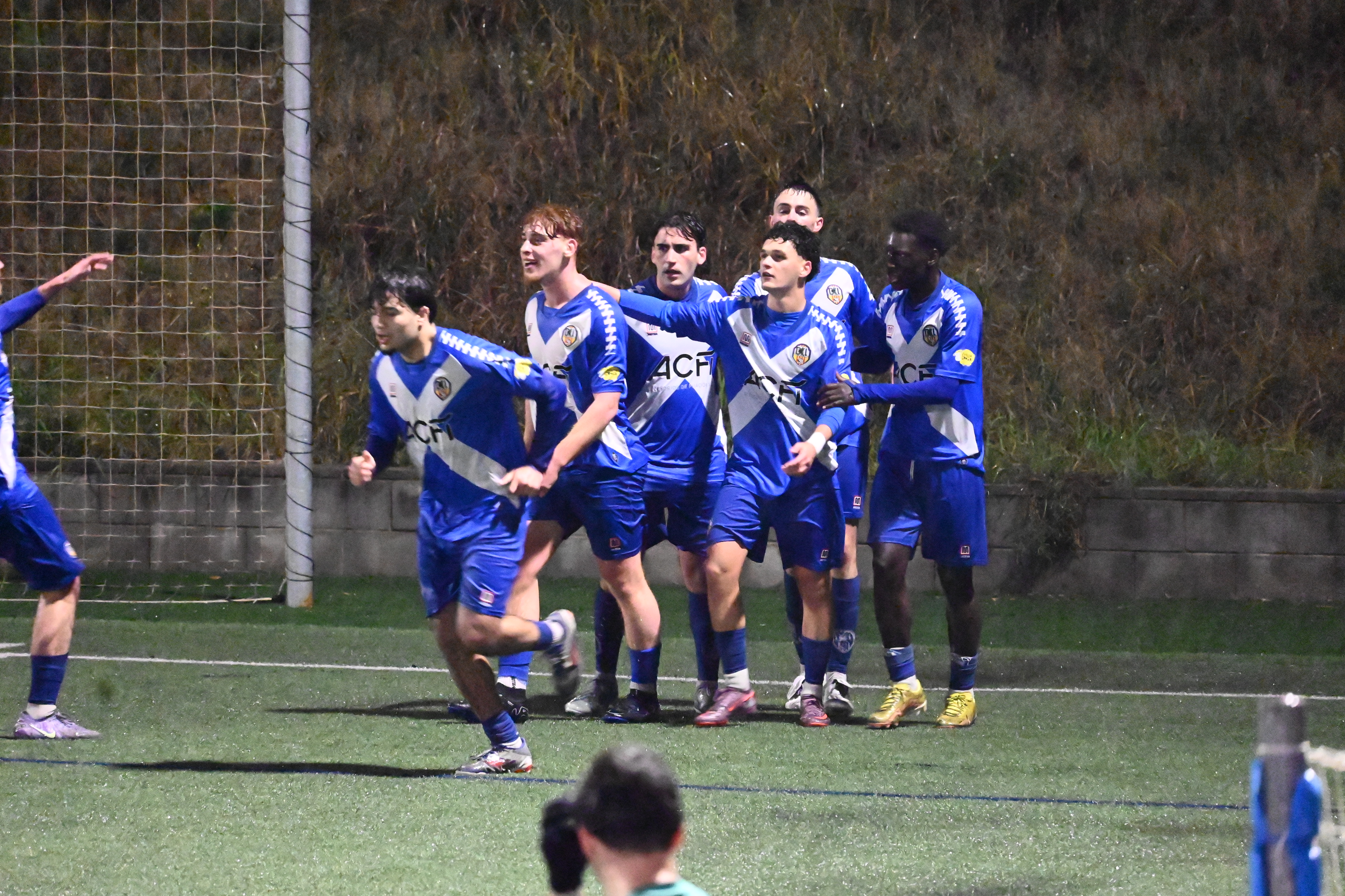 Celˇlebració del gol d'en Mousaab, 3-0